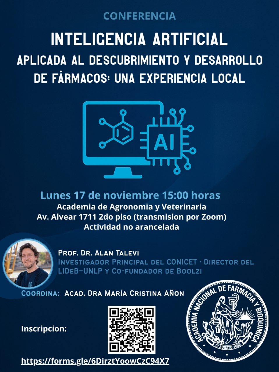 El 17 de noviembre se realizará la conferencia “Inteligencia artificial aplicada al descubrimiento y desarrollo de fármacos: una experiencia local”