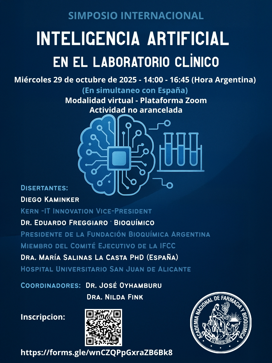 El miércoles 29 de octubre de 2025 se desarrollará (en simultáneo con España) el Simposio Inteligencia Artificial en el Laboratorio Clínico.